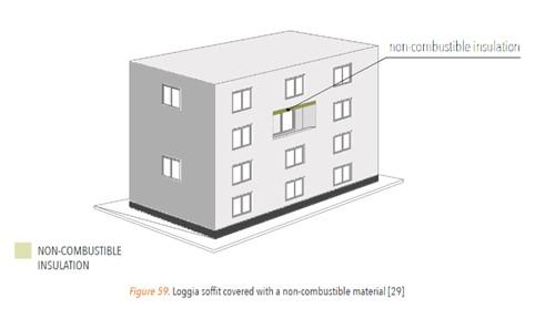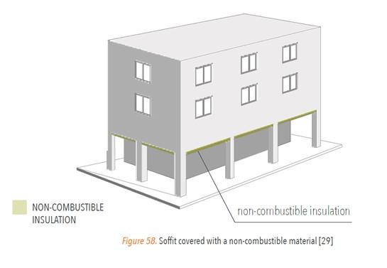 Homlokzatokon A homlokzatokat érintő szabályozások közül az alábbiak vonatkoznak a lefele hűlő födémek alsó síkján alkalmazható szigetelésekre. Csak A1 vagy A2 nem éghető tűzvédelmi osztályú lehet szigetelés