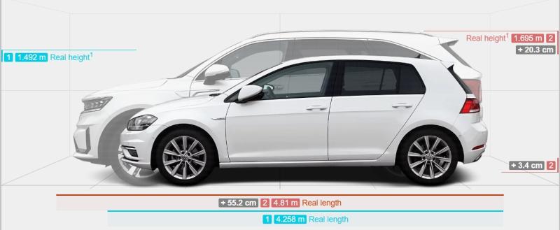 Lássunk először egy kompakt jármű (egy viszonylag új VW Golf) mellett egy hazánkban is kapható, nagy méretű SUV-t, a Kia Sorentót: