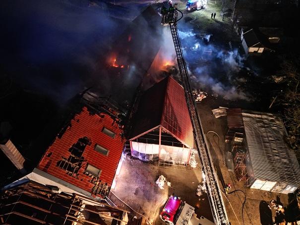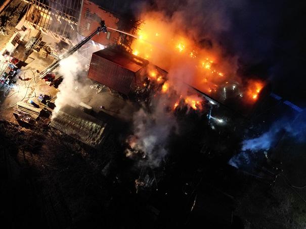 Drónfelvételek – egy ipari csarnok égett