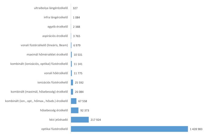 A statisztika 14 tűzjelző érzékelő fajtát tart számon. A 16 015 rendszerbe telepített, összesen 1 906 504 tűzjelző érzékelő