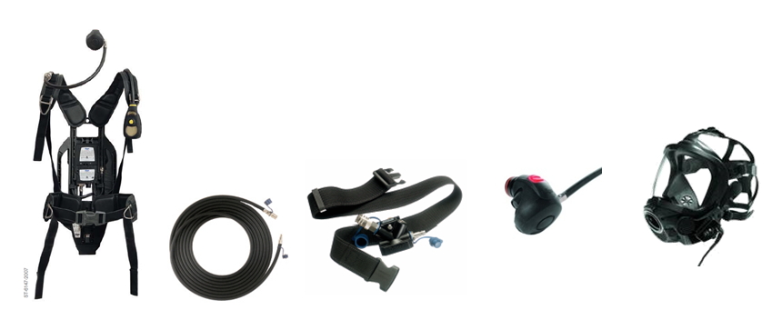 Opcionális megoldás II/II. Ha elfogyna a külső levegő, akkor a kispalackos PAS COLT ( 2liter / 300 bar, 15 perces) légzésvédőre kapcsol át, ekkor nem kell a derékszíjkészlet.