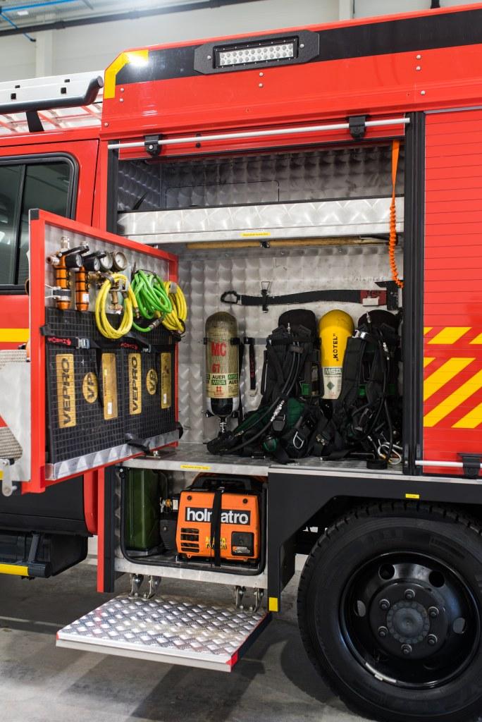 A lényeg a beavatkozásnál az átláthatóság. A kisméretű jármű miatt a légzőkészüléktartók a fülkéből a málhatérbe kerültek. Ez csak látszólagos hátrány, az előny a nagyobb biztonság és a kényelem. A málhatér felosztása is rendhagyó módon történt: