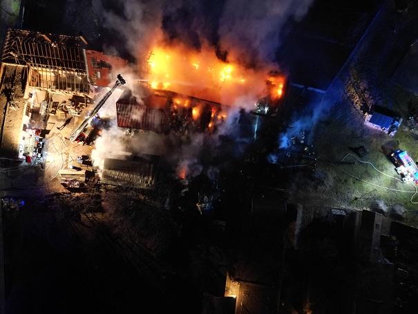 Drónfelvételek – egy ipari csarnok égett